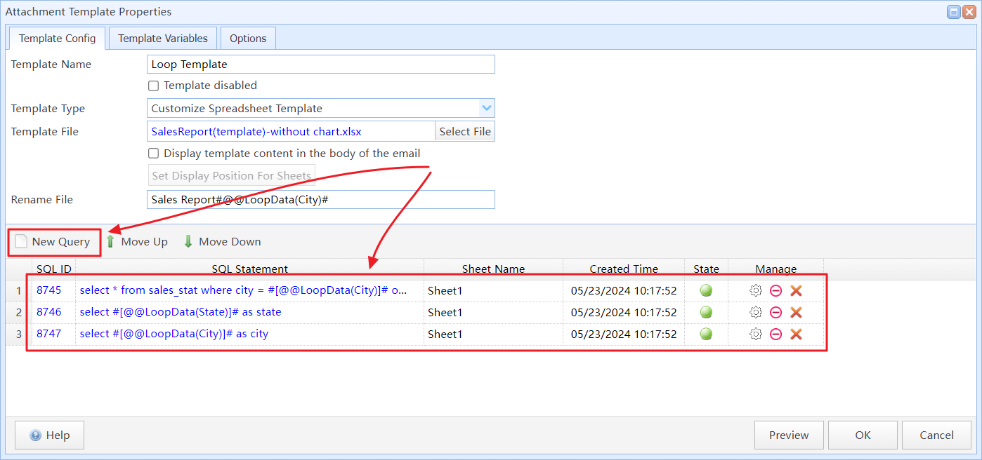 You can use SQL queries in both the body template and the attachment template to retrieve information from your database and convert the retrieved information into different formats according to your requirements.