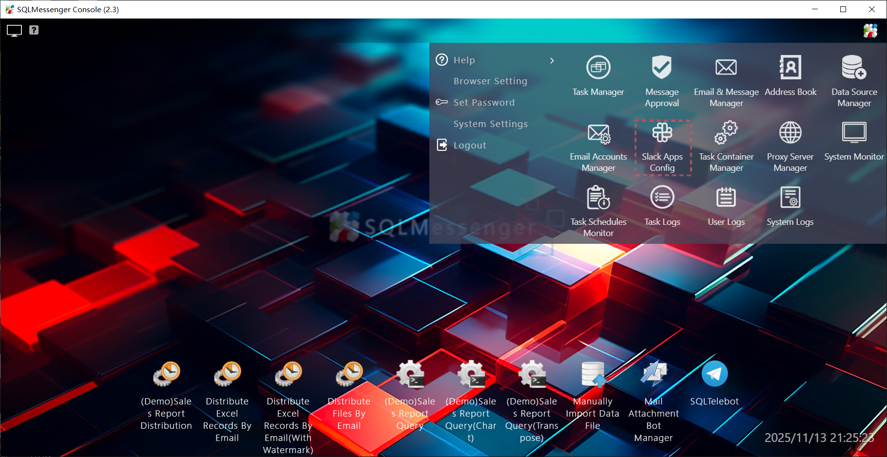 Step 1: Click the Slack Apps Config icon in the Main Menu of SQLMessenger.
