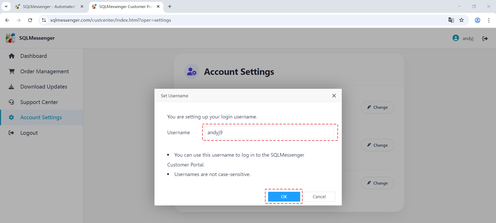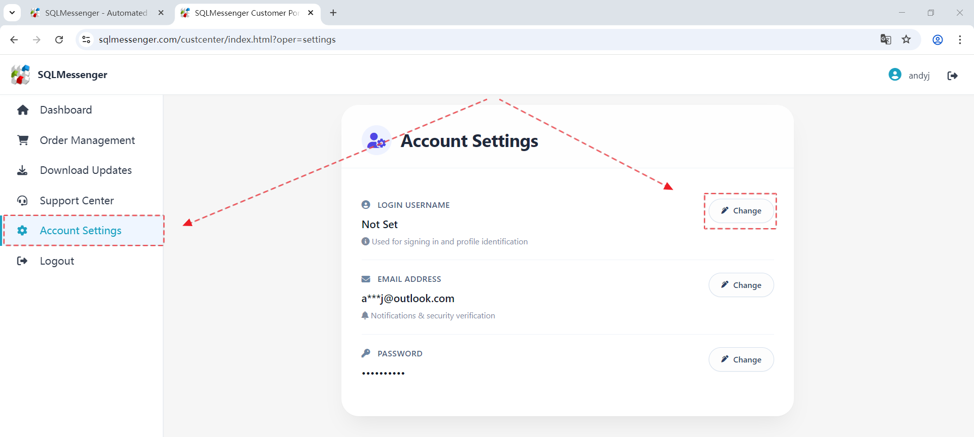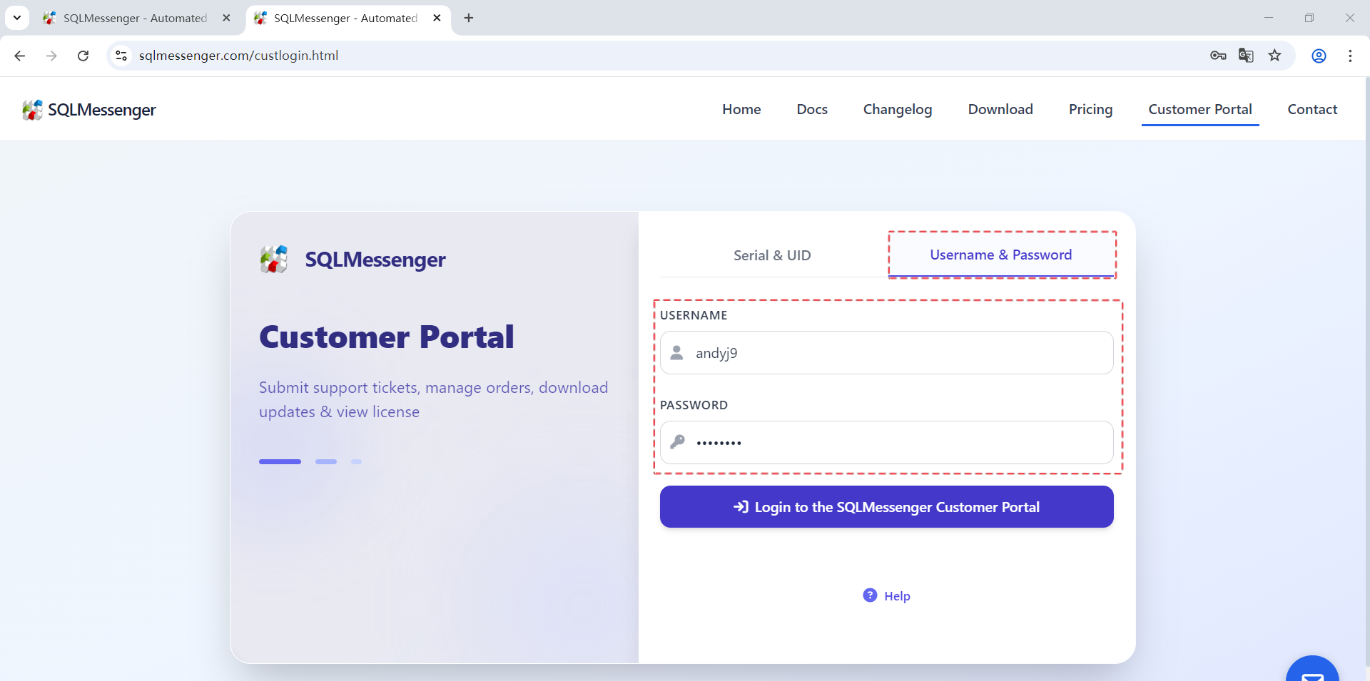 - Method 1: Log in to the Customer Portal from the SQLMessenger Console