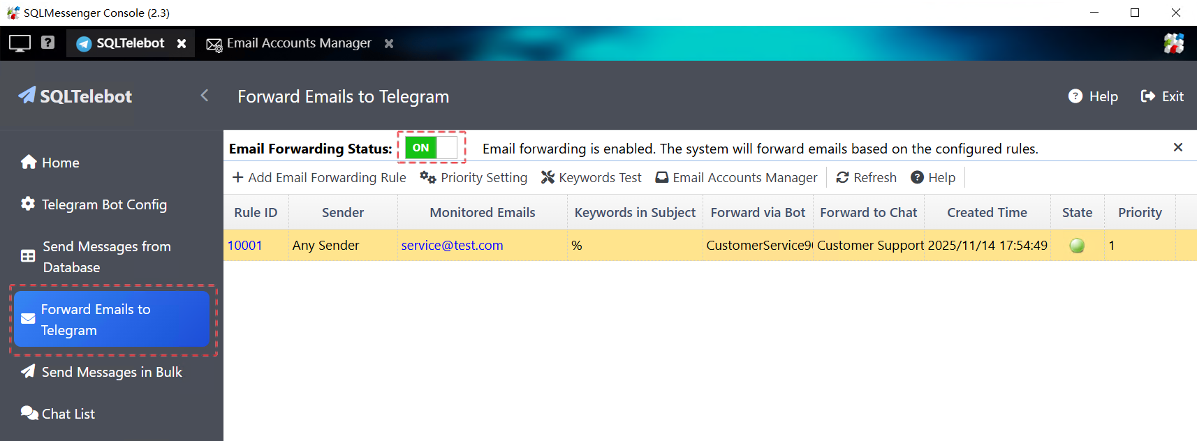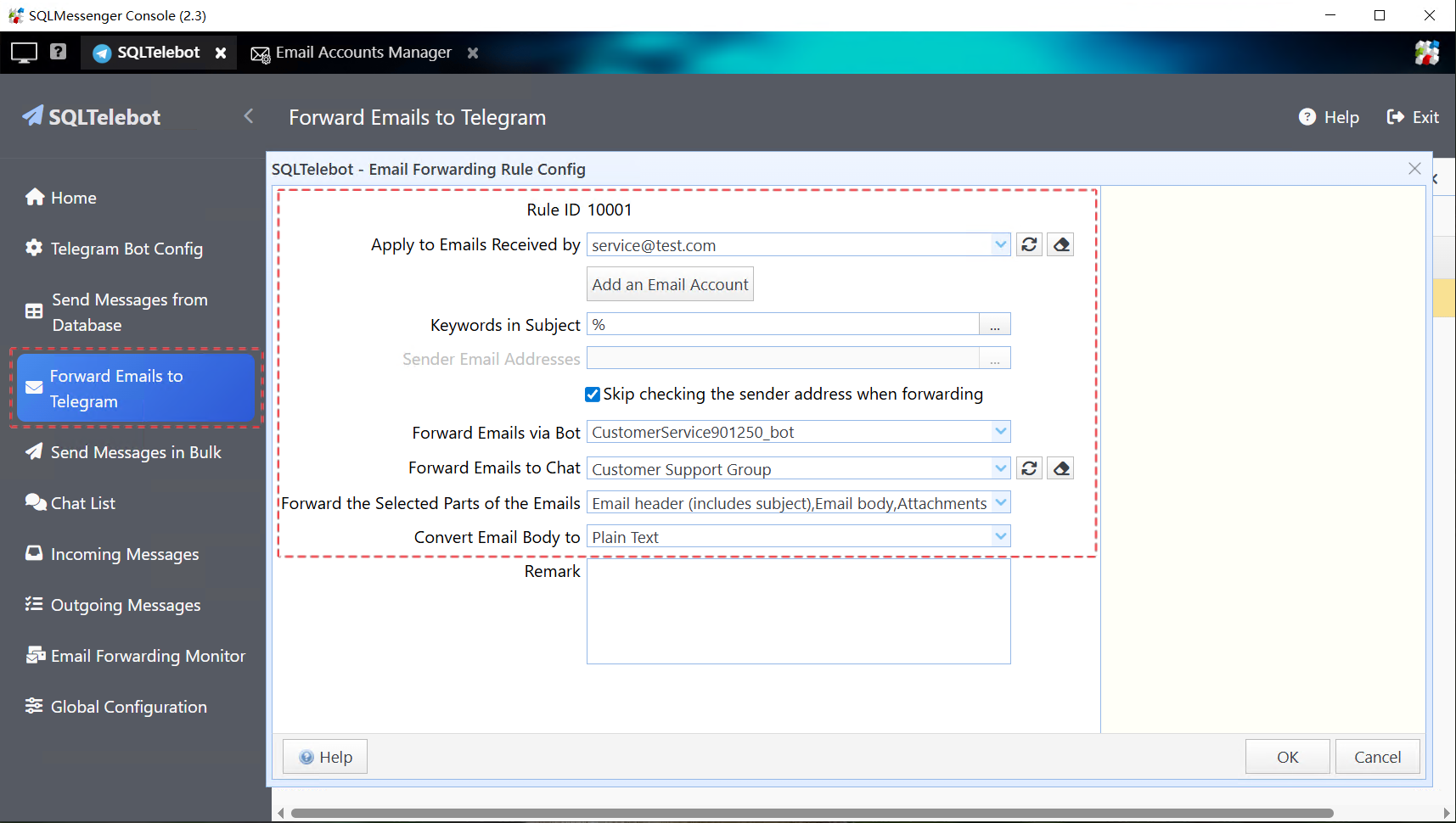 SQLTelebot is a plugin for SQLMessenger. With this plugin, you can easily forward emails to Telegram automatically.
