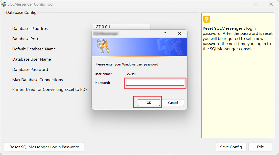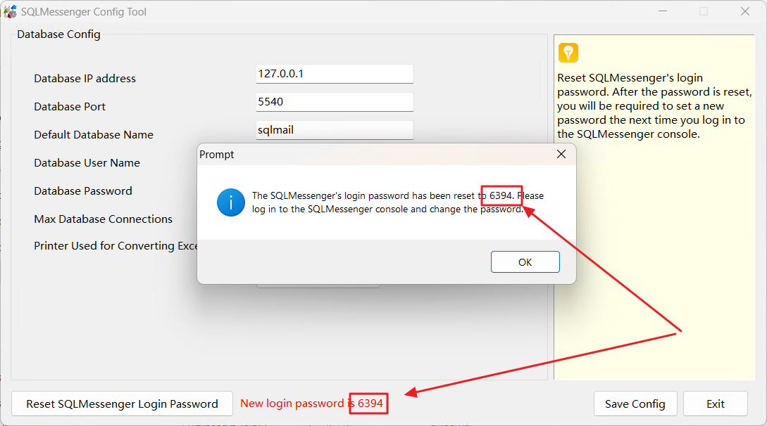 Step4: The setup.exe will reset the SQLMessenger login password to a 4-digit number and display the new password on the interface. You can use this new password to log in to the SQLMessenger console. After logging in, the system will prompt you to change your login password.