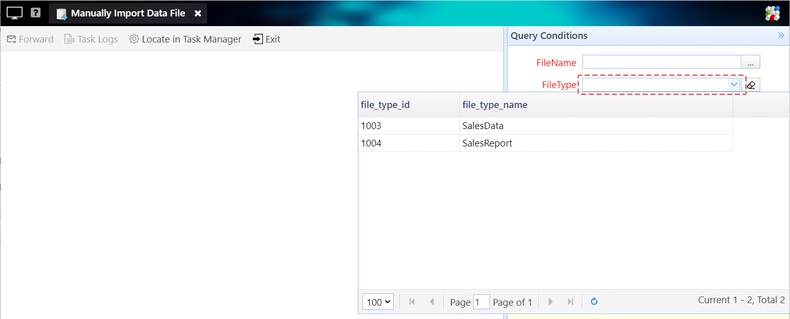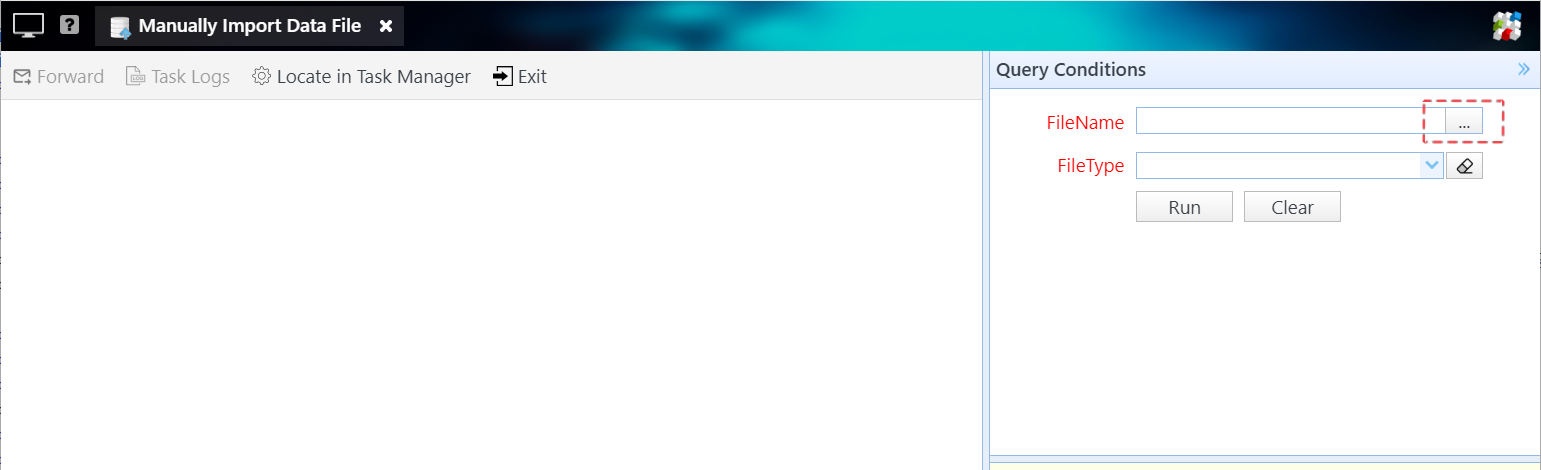 Step 1: Click the “Manually Import Data File” icon to open the Manually Import Data File window.