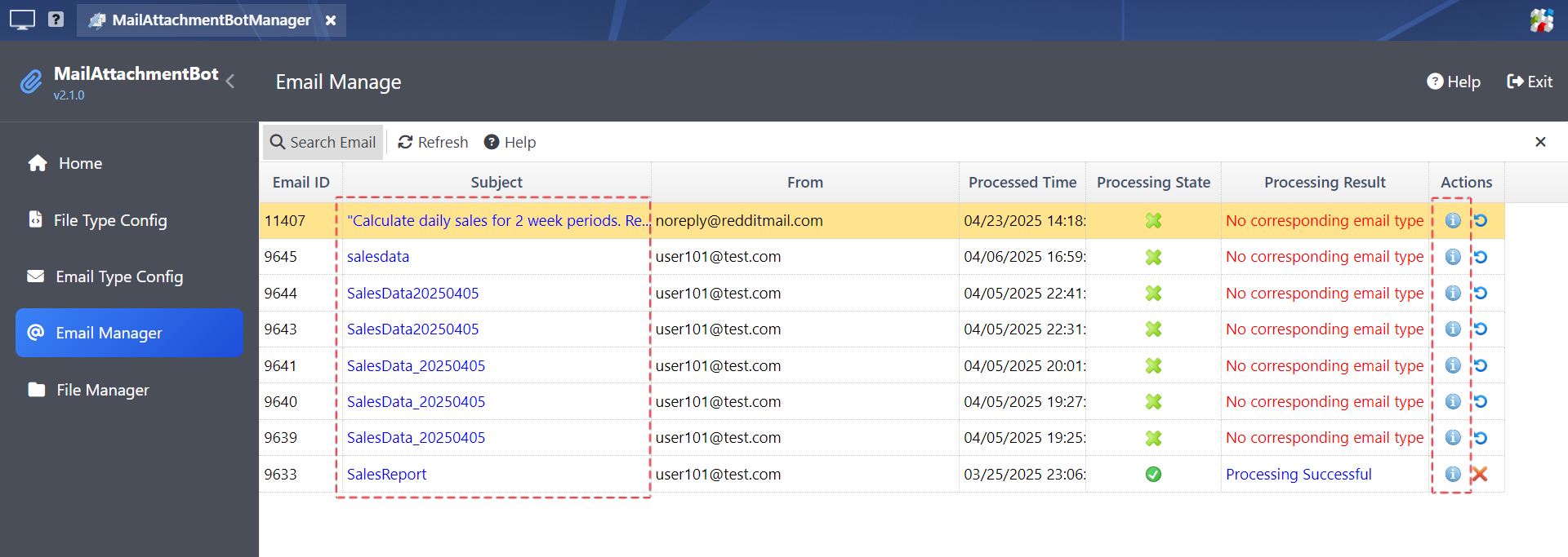 1. Managing Processed Emails in Email Manager