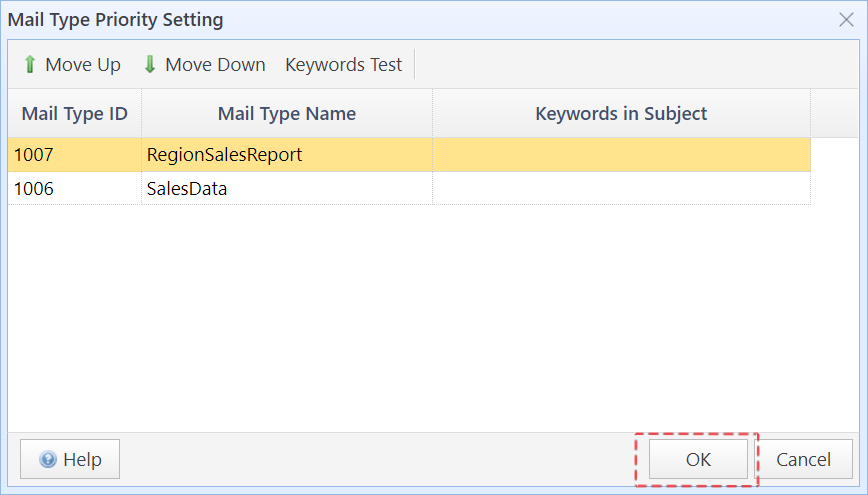 When determining the mail type, the system matches keywords based on the priority order of the mail types.