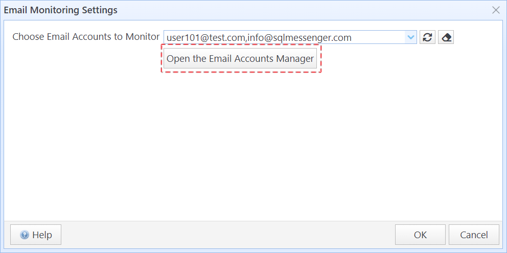 For instructions on configuring the email account, please refer to the Adding an Email Account chapter in the SQLMessenger manual.