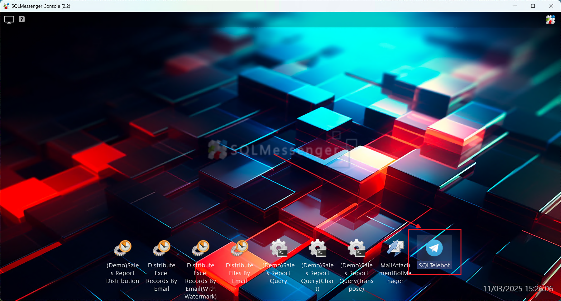 You can open SQLTelebot Manager by double-clicking the "SQLTelebot" icon on the Main Page.