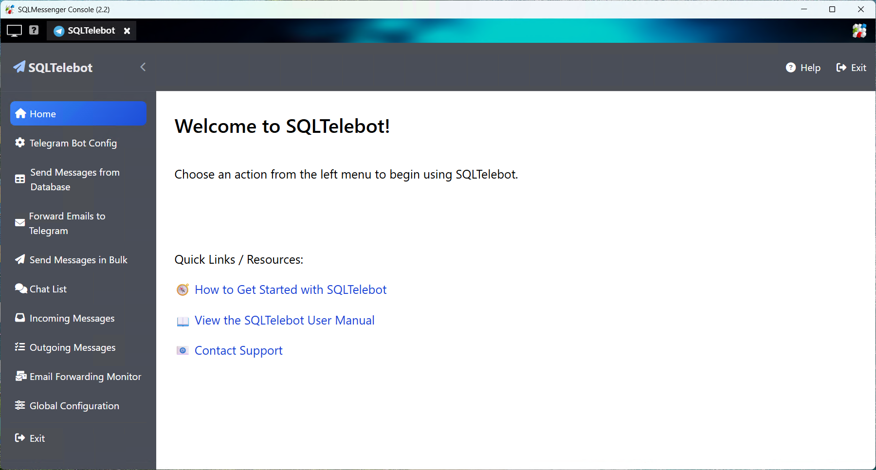 After installing the SQLTelebot plugin, you can use SQLTelebot Manager to configure and manage it.