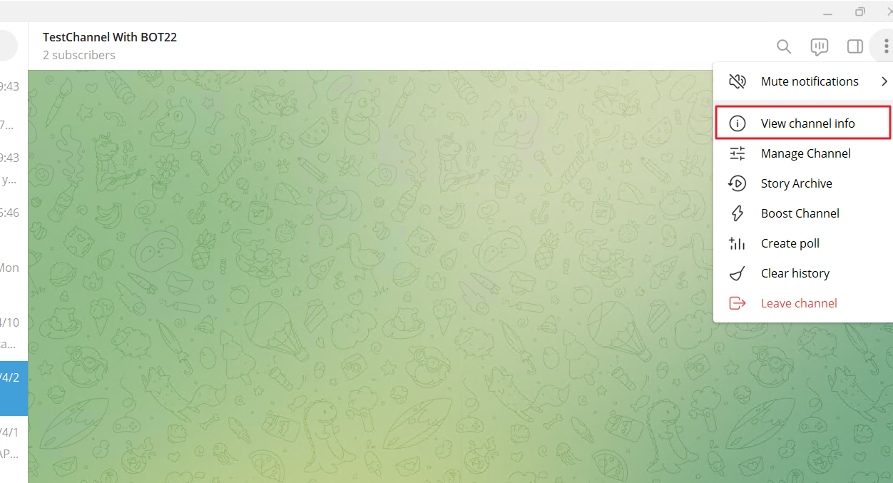 Step 1: In Telegram, click the "View Channel Info" menu item: