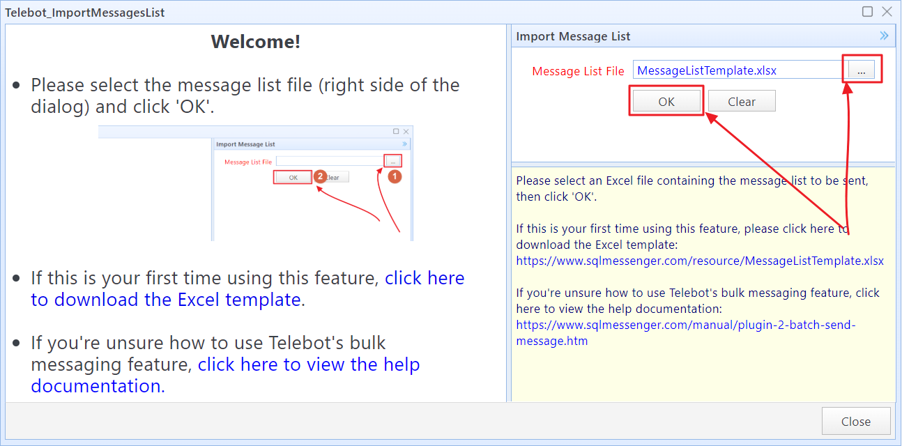 Step 2: Click the “...” button next to Message List File, select the message list file you prepared, and then click OK.